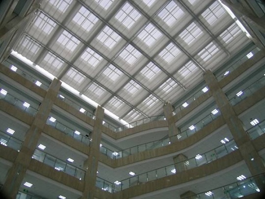 遮阳天棚帘可用于商厦、商场、宾馆、写字楼、等大型采光顶也可用于住宅阳光室、花棚、玻璃阳台等处调节遮阳、保持室内适宜温度,避免强光辐射,改善采光效应。